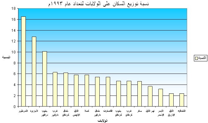 توزيع السكان ومرتبة الولايات لعام 1993م