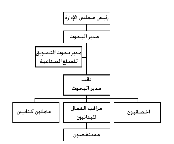 1/ إدارة بحوث التسويق: 1/1 وظائف إدارة بحوث التسويق: The marketing research business لا شك أن الوحدات الاقتصادية كبيره و صغيره تقوم دائم بدراسات تدخل في نطاق بحوث التسويق، حتى و إن لم يضم التنظيم الإداري للوحدة الاقتصادية إدارة أو قسم متخصص في بحوث التسويق و أحيان تتم هذه الدراسات دون أن يدرك القائمون به أنهم يعالجون أمور تدخل في دائرة بحوث التسويق. فصاحب المتجر الصغير المستقل مثل يعتمد في إدارة بعض نشاطه على متابعة حركة المخزون عنده. و قد تكفيه المشاهدة لاتخاذ قرارات تسويقية تتعلق بم ينبغي شراءه من أجل البيع صنف و كمية. غير أن الوحدة الاقتصادية الكبيرة التي يتسم نشاطه بالمشكلات التسويقية العميقة و المنوعة و السباقة لمسايرة التقدم الصناعي في مجال إدارة الأعمال تعني بتنظيم إدارة متكاملة لبحوث التسويق تزاول النشاط على سبيل التخصص.و تكون قاعد للقرارات التسويقية المبنية على الدراسة العلمية. و قد لازم التطور المستمر في نشاط بحوث التسويق تنوع الدراسات التي تتولاه إدارات بحوث التسويق و بالتالي تنوعت وظائفها. و مع ذلك فإن محاولة التعميم قد تفيد بقدر ما فنلاحظ أن جزئ كبير من النشاط اليومي لإدارة بحوث التسويق يتعلق بتجميع البيانات الجارية ز تحليله لإفادة المسئولين عن تطورات السوق و الكفاءة النسبية للمشروع في ظل هذه التطورات. و في هذ النطاق المحدود قد يتولى بعض المساعدين تجميع المادة التحريرية المنشورة في الدوريات و المرتبطة بنشاط المشروع. كم يتولى البعض الآخر تحليل حركة المبيعات حسب المناطق و المنتجات و فئات العملاء مثلاً. كم أن قدر كبير من مجهودات بحوث التسويق يذهب في دراسات تحليلية لمشكلات متكررة، مثل التنبؤ بالمبيعات إجمال و حسب المناطق، و قياس شعور العملاء نحو المنتجات و الخدمات. هذ إلى جانب البحوث المتعلقة بمشكلات تسويقية خاصة تقوم إدارة البحوث بتنفيذه بناء على طلب الإدارة العليا. أو بمبادرة تنبع أصل من إدارة بحوث التسويق. و أكثر مجالات بحوث التسويق شيوع في المشروعات: تحديد الطاقة الاستيعابية للسوق، و تحليل نصيب المشروع من طاقة السوق، و تحديد خصائص السوق و تحليل المبيعات و دراسة المنتجات المنافسة و دراسة مدى تقبل المستهلكين للمنتجات الجديدة و تقدير المبيعات المتوقعة منه ثم التنبؤ قصير المدى. 1/2 تنظيم إدارة بحوث التسويق Organization of marketing research department يتوقف حجم إدارة بحوث التسويق في منشآت معينة على طبيعة الوظائف التي تؤديه الإدارة و نطاق الأعمال الروتينية التي تدخل في اختصاصها. و مقدار التحليل الإحصائي الذي تقوم به. و باستثناء الوحدات الاقتصادية الكبيرة فإنه لا يعتبر اقتصادي عادت تنظيم إدارة مستقلة لبحوث التسويق في الوحدات الصغيرة. حيث يفضل البدء بأخصائي بحوث في مجال التسويق مع الاستعانة بالخبرة المتخصصة و الإمكانيات المتاحة لدى المراكز المستقلة لبحوث التسويق. عند قيام إدارة متخصصة لبحوث التسويق فإنه تضم عادة إلى جانب مدير الإدارة عدد من الأخصائيين و مساعدي الأخصائيين في بحوث التسويق و أخصائي في الإحصاء و أمين للمكتبة و بعض العاملين المساعدين. و قد تضم الإدارة عدد من المستقصيين الميدانيين (و يكون ذلك في حالة قيام إدارة البحوث باستقصاءات ميدانية مستمرة تبرر وجود قوة دائمة من المستقصيين) و الأفضل الاعتماد على مستقصيين مؤقتين. و قد يعمل بإدارة البحوث مشرفون ميدانيون مهمتهم الرئيسية هي الرقابة و الإشراف على أعمال المستقصيين الدائمين أو المؤقتين. و عندم تعهد إدارة المشروع بعملية الاستقصاء الميداني إلى أحد المراكز المستقلة لبحوث التسويق فإن المشرفين الميدانيين التابعين لإدارة البحوث يقومون بمتابعة العمل الميداني الذي يتولاه مركز البحوث. وهناك نمازج للتوسع في إدارات بحوث التسويق إلى حد استلزم أخصائيين في علم النفس و اعلم الاجتماع و أخصائيين في استخدام و تشغيل الحاسبات و كذلك أخصائيين في تصميم الرسوم التوضيحية لنتائج البحوث. هناك ثلاثة أسس لتوزيع الاختصاصات بين الأخصائ